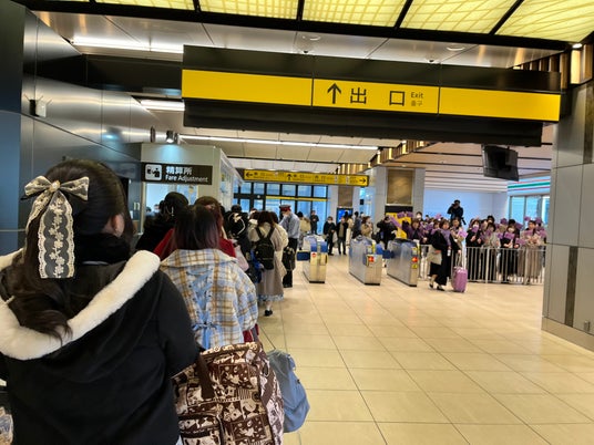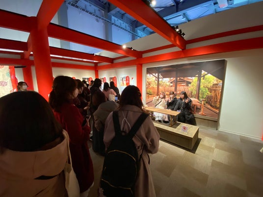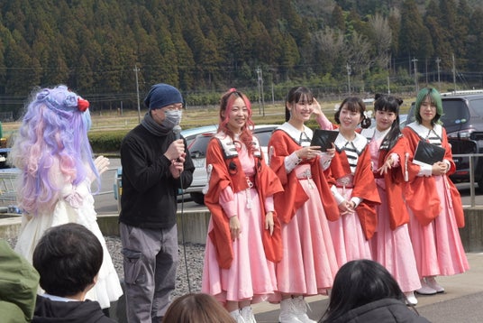 華やかな服に身を包んだ全国の店長や本部スタッフが3月16日に開業したばかりの北陸新幹線で「越前たけふ」駅に集まった