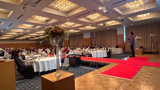 式典が開幕すると空気は一変。経営方針や前年度の業績が発表される中、店舗を背負う“店長”として、会社を支える社員として、背筋を伸ばし緊張した面持ちで会に臨む姿が見られた。五十嵐社長も登壇し、会社の理念やパーパスについてを熱く語った。特に今年はグローバル事業の強化やインバウンド需要の拡大を重要視する流れもあり、「世界中」という観点を強調した。