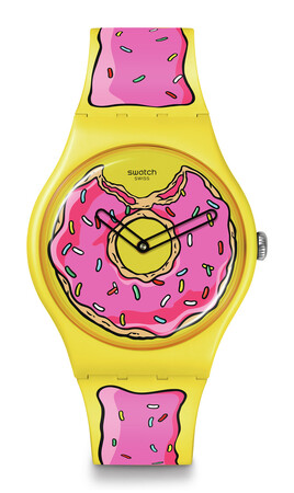 おいしいおやつを探していると、ドーナツしかないことが時々あります。そこでSwatch が創ったのが『The Simpsons』を讃えるスペシャルウォッチです。このスペシャルウォッチはSwatch ファンにも、『The Simpsons』ファンにも甘い雰囲気をもたらすはずです。