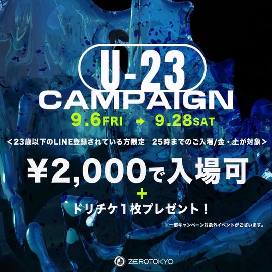 条件: ▪︎23歳以下 ▪︎ZEROTOKYO公式LINEのご登録▪︎25時までのご入場