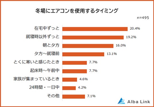 今回、株式会社AlbaLink( https://albalink.co.jp/ )が運営する訳あり物件買取プロ( https://wakearipro.com/ )は、冬場にエアコンを使っている495人を対象に「冬場のエアコン使用」についてアンケート調査を実施しました。