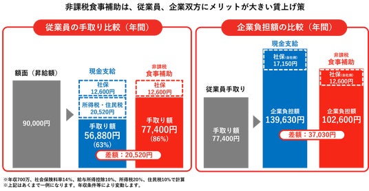 1.食事補助の非課税枠を活用し、従業員の税負担軽減による実質手取りアップを実現!