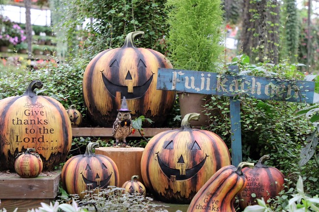 ハロウィンの季節になりました!富士花鳥園の今年のハロウィン企画はフクロウ・タカのフライト体験です。