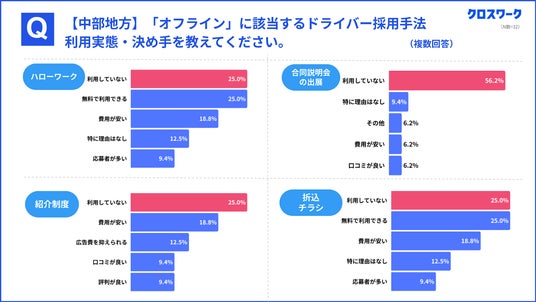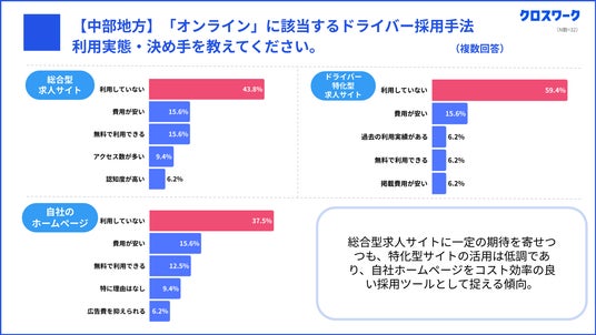 3)中部地方のドライバー採用:オフライン重視とコスト意識が鮮明に、約6割が専門サイト未利用