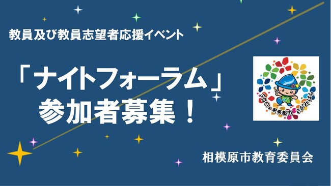 相模原市教育委員会では、教員及び教員志望者を応援する参加費無料のオンラインイベント「ナイトフォーラム」を初めて開催します。本市の教育の特色や現職教員の生の声を聞くことで教育の魅力を感じられる内容となっており、仕事や授業の後でも受講しやすい夜の時間帯に設定しました。