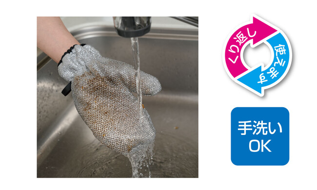 ミトンで拭き取った焦げや汚れも洗って簡単に落とせるのでお手入れ簡単です。使い捨てではなく、くり返し使えるのでとってもエコ。