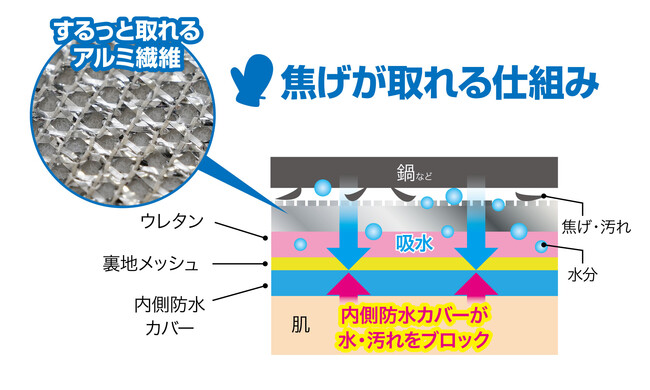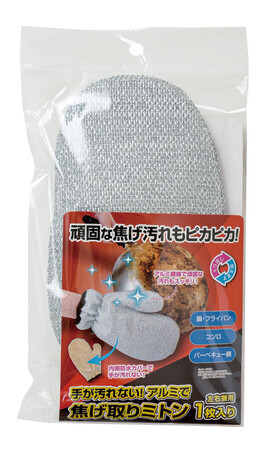 手が汚れないアルミのミトンで、鍋・フライパン・ガスコンロ・ごとくなどの焦げ落としに。