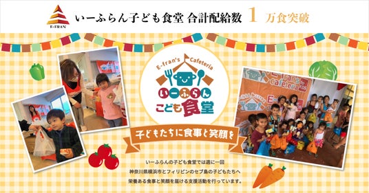 株式会社いーふらん(本社:神奈川県横浜市、代表取締役社長 鹿村大志、以下いーふらん)は、当社が社会貢献活動の一環として実施している「子ども食堂」において、これまでに配給した食事の総数が1万食を突破したことをお知らせいたします。