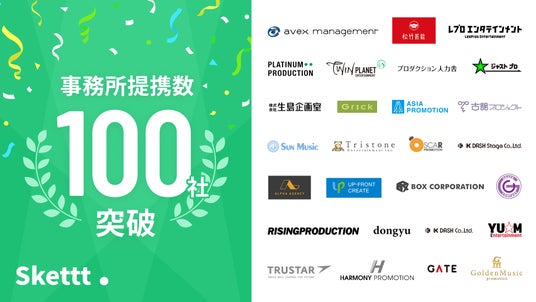 地方・成長企業の認知獲得・売上向上に特化したIPマーケティング包括支援サービス「Skettt(スケット)」を運営する株式会社Wunderbar(本社:東京都渋谷区、代表取締役:長尾慶人)は、「Skettt」の運営において、業務提携を行っているタレント事務所の数が100社を突破したことをお知らせいたします。