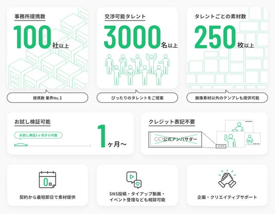 そして、2022年1月にサービスをリリースしてから約2年半で、提携しているタレント事務所数が100社を突破し、交渉可能タレント数は3000名以上となりました。
