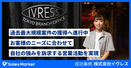 国内初※1「顧客起点」でおこなう新時代の営業手法「インテントセールス」を実現する『Sales Marker(セールスマーカー)』を開発・提供する株式会社Sales Marker(本社:東京都港区、代表取締役 CEO:小笠原 羽恭)は、情報セキュリティコンサルティングや研修事業※2などを展開する株式会社イヴレス(本社:大阪府大阪市、代表者:外山 弘洋、以下:イヴレス)における『Sales Marker』を活用したインテントセールスの取組み効果をまとめた事例インタビュー記事を、本日公開したことをお知らせします。