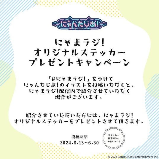 番組内で紹介された場合、番組特製の「にゃまラジ!オリジナルステッカー」をプレゼントします!