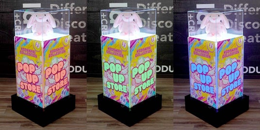 台座がRGBに発光し、展示を華やかに演出
