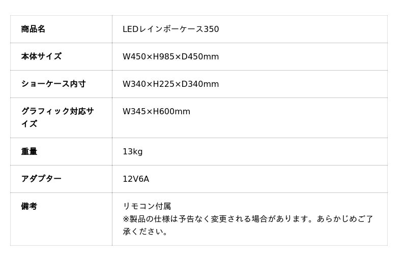 【LEDレインボーケース350】の特長