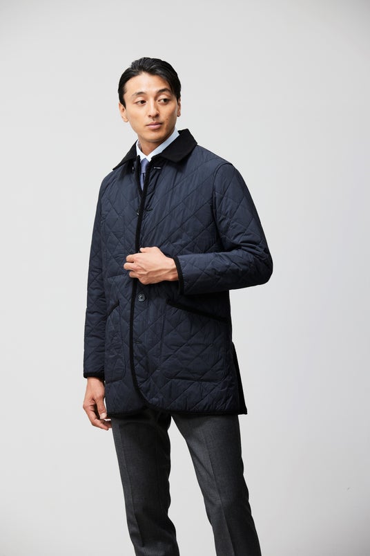 冬の防寒対策としてアウターは必需品ですが、お客様から“急な雨などでアウターが濡れてしまう”や“アウターの上からレインコートは着用できない”などのお悩みがあがっていました。そこで今回、レインコート並みの撥水性を備えた“ダントツ撥水”のアウターを企画しました。デザインは、昨今の着こなしの多様化により、オンオフ兼用で着用可能なアイテム需要が高くなっていることから、ショート丈のキルティングを採用しました。外出時の移動でも、着丈が気にならない長さに仕上げています。