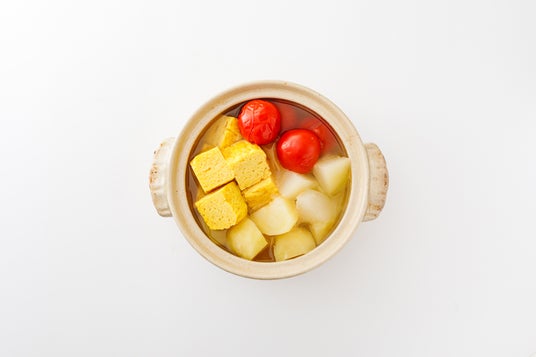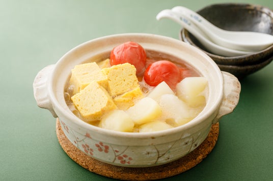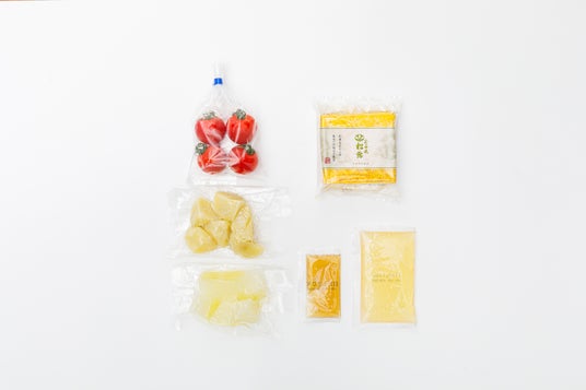 ・内容:ミディトマト、加熱じゃがいも、加熱冬瓜、厚焼き玉子、白だし、トマトだし