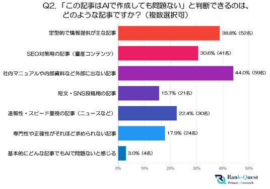 調査結果2.:「この記事はAIで作成しても問題ない」と判断できるのは、どのような記事ですか?※複数選択可(注2)