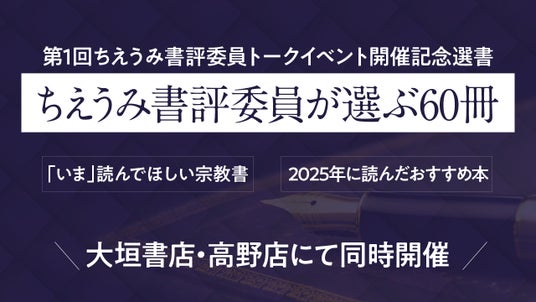 ちえうみでは、本イベントの開催を記念して、選書フェアを企画しました。イベントを開催する大垣書店・高野店ならびにWebメディア「ちえうみPLUS」にて同時開催です。テーマは「『いま』読んでほしい宗教書」「2025年に読んだおすすめ本」。書評委員のコメントとともに紹介します。