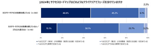 また、ヘルススコアと期間を組み合わせてフェーズ分けを行っている企業の割合は、効果を感じていない層で比較的高く(23.7%)、複数の指標を使って運用プロセスを管理していることがわかります。