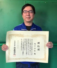 この度は安全優良職長厚生労働大臣顕彰を頂き、誠にありがとうございました。私は請負現場の工程管理者として、今まで様々な事業所のお客様と接し安全業務を遂行してまいりました。事業所ごとに様々な違いはありますがインハウス事業部はお客様と身近にコミュニケーションがとれ、すぐ近くで同じ目標に向かって進むことができます。クライアント様と一緒になって安全を考え、実行できる所がインハウス事業部の良いところだと思います。