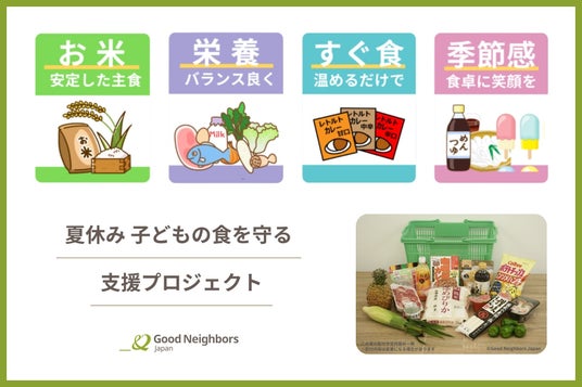 上記に挙げた調査結果を受け、グッドネーバーズ・ジャパンは物価高騰と給食のない長期休みが重なるこの夏、『夏休み 子どもの食を守る支援プロジェクト』を実施し、ひとり親家庭の食卓を支えたいと考えています。