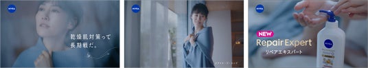 今回、日頃からNIVEAを愛用されている俳優の菊地凛子さんを起用。長期戦となる乾燥肌対策として、『ニベア リペアエキスパート』を塗り、次の日までうるおいが続いていることを実感する菊地さんの表情にも、是非注目してご覧ください。