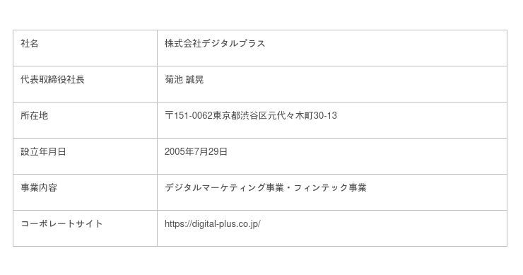 【サービスに関するお問い合わせ先】株式会社デジタルプラス 担当 古瀬TEL:03-5465-0695 Email:info@digital-plus.co.jp【当リリースに関するお問い合わせ先】株式会社デジタルプラス PR担当 佐藤TEL:03-5465-0690 Email:pr@digital-plus.co.jp