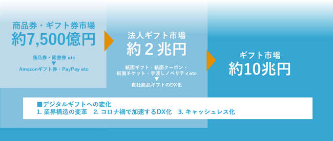 ●SNSを活用しインスタントウィンのキャンペーン利用として■デジタルギフト(R)の対面市場について日本国内のギフト市場は約 10 兆円と言われており、当社は、1.手数料無料化 2.受取先拡充 3.認知度向上によって、シェア・流通総額拡大を目指しております。当社の強みを活かした金券をデジタル化させたサービス提供の開始を皮切りに「ギフト券市場」をターゲットとして事業を推進、自社商品ギフトの展開による「法人ギフト市場」への参入、また資金移動業の取得により「CtoC市場」へ参入していき、約10兆円の市場を抑えていくことを目標にサービスの開発・改善、営業強化を推進しております。<対面市場規模>