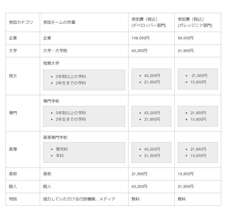 【参加資格】 高校生以上。エンジニア及び大学生、高専生、専門学生を主な対象としています。
