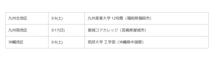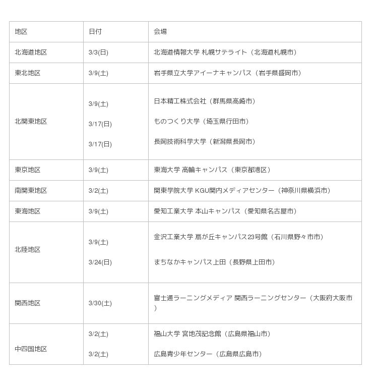 【各地区の開催日と会場】(開始、終了時刻は地区によって異なります)
