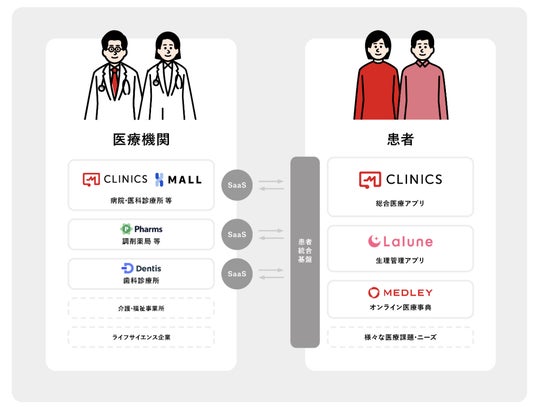 「CLINICS」では、医療機関のさらなる業務効率化や負担軽減を実現するため、「CLINICSオンライン診療」でのオンライン資格確認の機能提供や、「CLINICSカルテ」における電子処方箋に対応した機能実装を行い、政府が掲げる医療DXのさらなる普及に貢献していきます。さらに、Uber Eats やAmazonファーマシーとの連携を開始したように、今後もさまざま業界、業種の企業・団体などと連携を図りながら、市場の拡大にも取り組んでいきます。