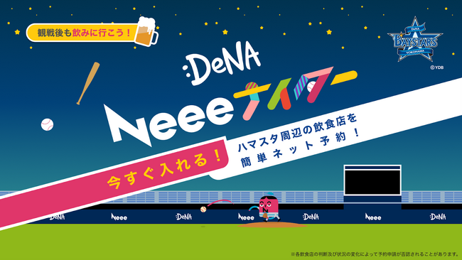 株式会社ディー・エヌ・エー(本社:東京都渋谷区、代表取締役社長兼CEO:岡村 信悟)は、当社が提供している、近くにある今すぐ入れる飲食店を予約することができるサービス「Neee(ニー)」にて、横浜DeNAベイスターズの主催ゲームをスポンサードする冠試合「DeNA Neeeナイター」を2023年5月17日(水)の広島東洋カープ戦にて開催いたします。