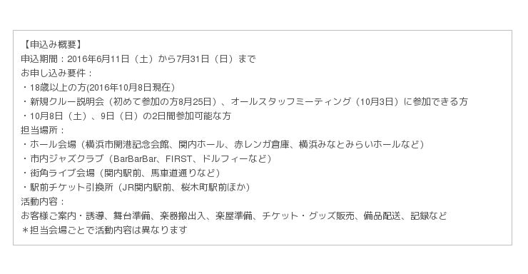 日本最大級のジャズ・フェスティバル「横濱 JAZZ PROMENADE 2016」に運営ボランティアスタッフとして参加しよう!!