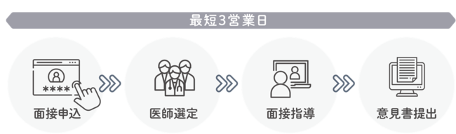またこうしたスムーズな実施機能の構築により、オンライン型の面接指導では、新規依頼から面接、意見書の提出までを、最短で3営業日以内に実施・完了することが可能になります。