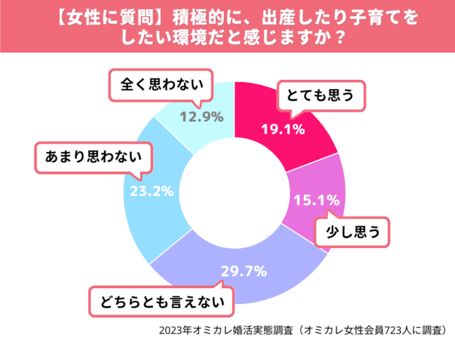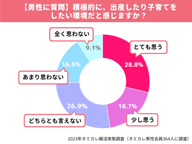 男性では「積極的に出産や子育てをしたい環境」と感じている人が多い結果になりました。