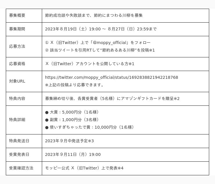 セレスが運営するポイントサイト「モッピー」では、夏の出費を取り戻すため、節約の知恵を増やす場を提供することを目的に、X(旧Twitter)上で節約にまつわる川柳を広く募集するキャンペーンを実施する運びとなりました。