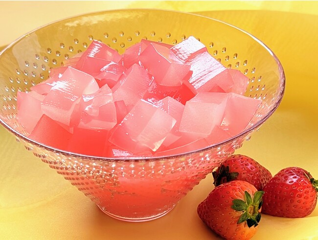 ジューシーで甘いあまおう苺に、乳酸菌飲料を隠し味に加え、まろやかな苺の甘さが楽しめるゼリーです。