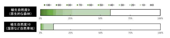 1.半数以上の陸上風発計画で、全国に18%しか残っていない、原生林に近い森林を示す「植生自然度9」のエリアを含んでおり、特に北海道、東北、九州、四国で多い傾向にある(図2,3)。また、約15%の計画で、環境省が保全すべきとして指定している特定植物群落を含んでいた。