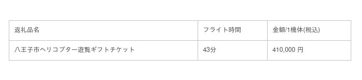 ふるさと納税制度により、上空から八王子市街をお楽しみいただくことで、八王子市及び多摩エリアの魅力発信および新しい観光サービスの創出支援に努めてまいります。