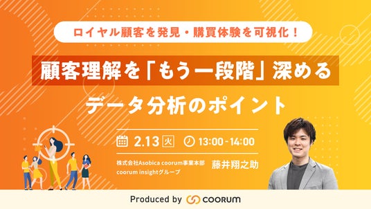2月13日(火)より「coorum insight」の機能や活用事例に関するセミナーを開催します。サービスにご興味をお持ちいただけましたら、ぜひご参加ください。