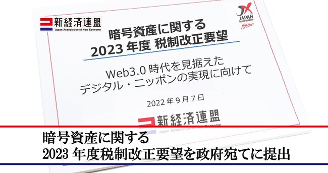 一般社団法人 新経済連盟(所在地:東京都港区、代表理事:三木谷浩史、以下「新経連」)は9月7日、暗号資産に関する2023年度税制改正要望を提出しました(https://jane.or.jp/proposal/pressrelease/17819.html)。