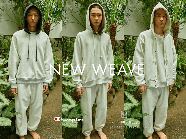 「NEW WEAVE(ニューウィーブ)」と名付けられたカプセルコレクションは、古着屋からキャリアをスタートし、Champion の希少なビンテージスウェットシャツを所有するN.HOOLYWOOD デザイナー 尾花大輔氏(オバナ ダイスケ)によって、Championのプロダクトをベースに新たな解釈で実験的に再構築しデザインしたコレクションです。