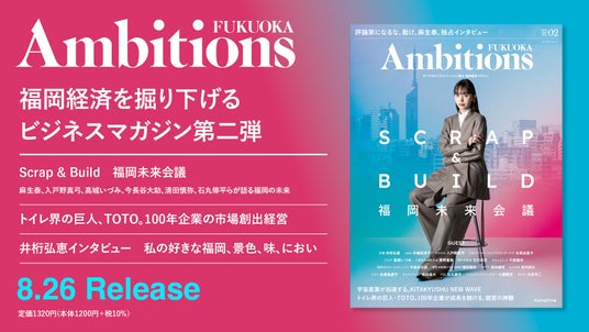 株式会社アルファドライブの子会社、株式会社Ambitionsは、2024年8月26日にビジネスマガジン『Ambitions FUKUOKA Vol.2』を発刊します。福岡・九州のビジネスシーンを盛り上げ、ビジネスパーソン一人ひとりをエンパワーすることを目指します。
