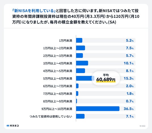 ■新NISA、“つみたて投資枠“での毎月の積立平均金額は60,689円と高い傾向に。昨年実施した調査と比較すると+37,273円と大幅UP。