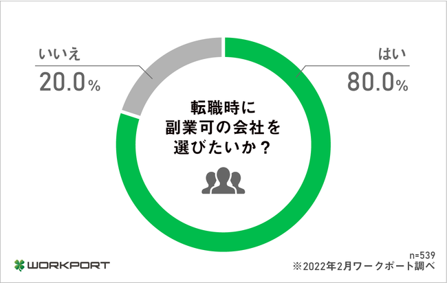 ■【副業OKな会社への転職意欲】 80.0%が「転職するなら副業OKな会社を希望する」と回答
