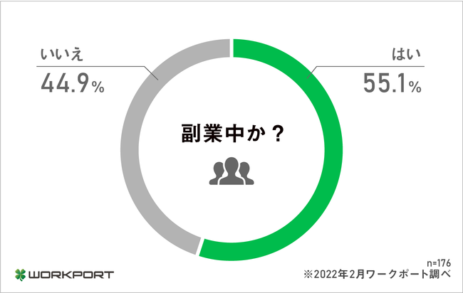さらに副業経験があると回答した人176人のうち、現在も副業を継続している人は55.1%でした。何らかの副業経験がある人の中の半数が、副業を自身のワークスタイルとして確立しているといえそうです。