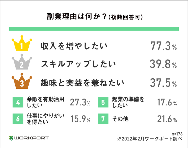 ■【副業の理由】 「収入を増やしたい」(77.3%)がダントツの1位