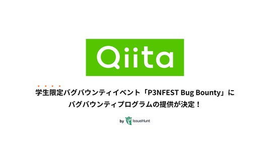 バグバウンティ・プラットフォームやプロダクトセキュリティ支援サービス等を提供するIssueHunt株式会社(本社:東京都中央区日本橋茅場町一丁目8番1号、代表取締役:横溝 一将、HP:https://issuehunt.jp )が開催する、学生向けバグバウンティイベント「P3NFEST Bug Bounty」について、Qiita様にご提供いただくバグバウンティプログラムが決定しましたので、お知らせいたします。