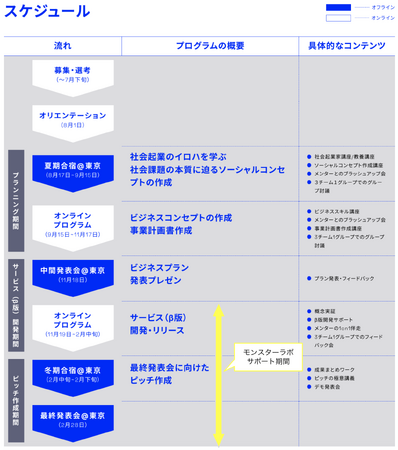 <社会起業家アクセラレーションプログラムの詳細と支援スケジュール(予定)>