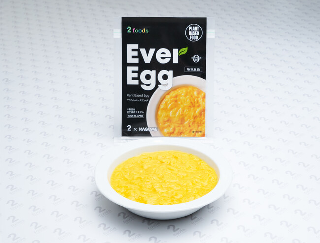 “ヘルシージャンクフード”をコンセプトにプラントベースフードを展開している2foodsは、今年3月に、業務資本提携を結んでいるカゴメ株式会社と、プラントベースエッグ「エバーエッグ」を共同開発しました。人参と白いんげん豆を原料に、国内特許出願中の独自技術「野菜半熟化製法」を用いて“ふわとろ”食感を実現したのがこの商品です。